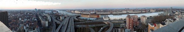 März 2012: Rhein zwischen Ludwigshafen und Mannheim, Panorama aus elf Fotos zusammen gefügt (mit Peter und Claudio)